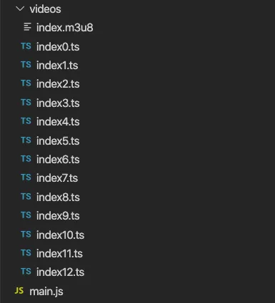 All done! You can now stream video with Node.JS. The server we built is a very simple example, but you can serve these files in any way you want as long as its over HTTP. The thing that matters is that each path in index.m3u8 is consistent with the actual URLs of each data file.